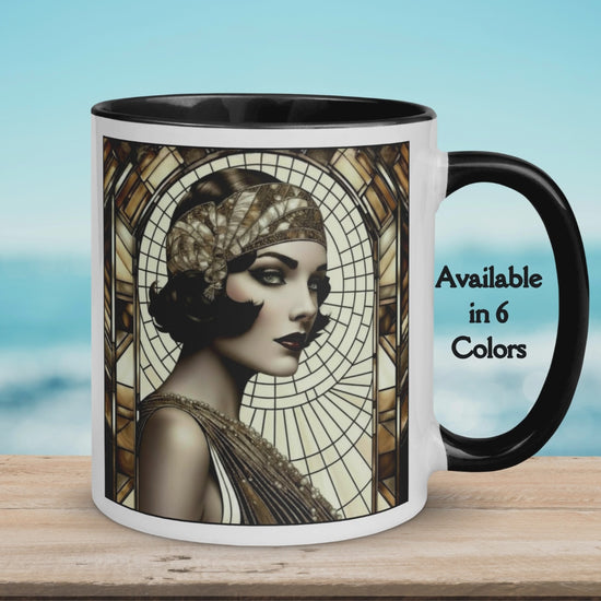 Art Deco Flapper Mug with Color Inside: Elegant Roaring Twenties Gift