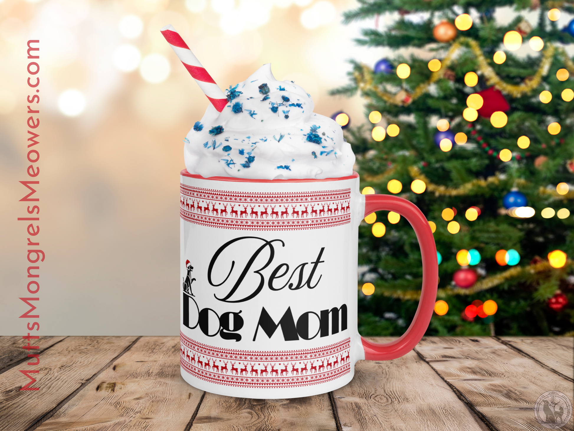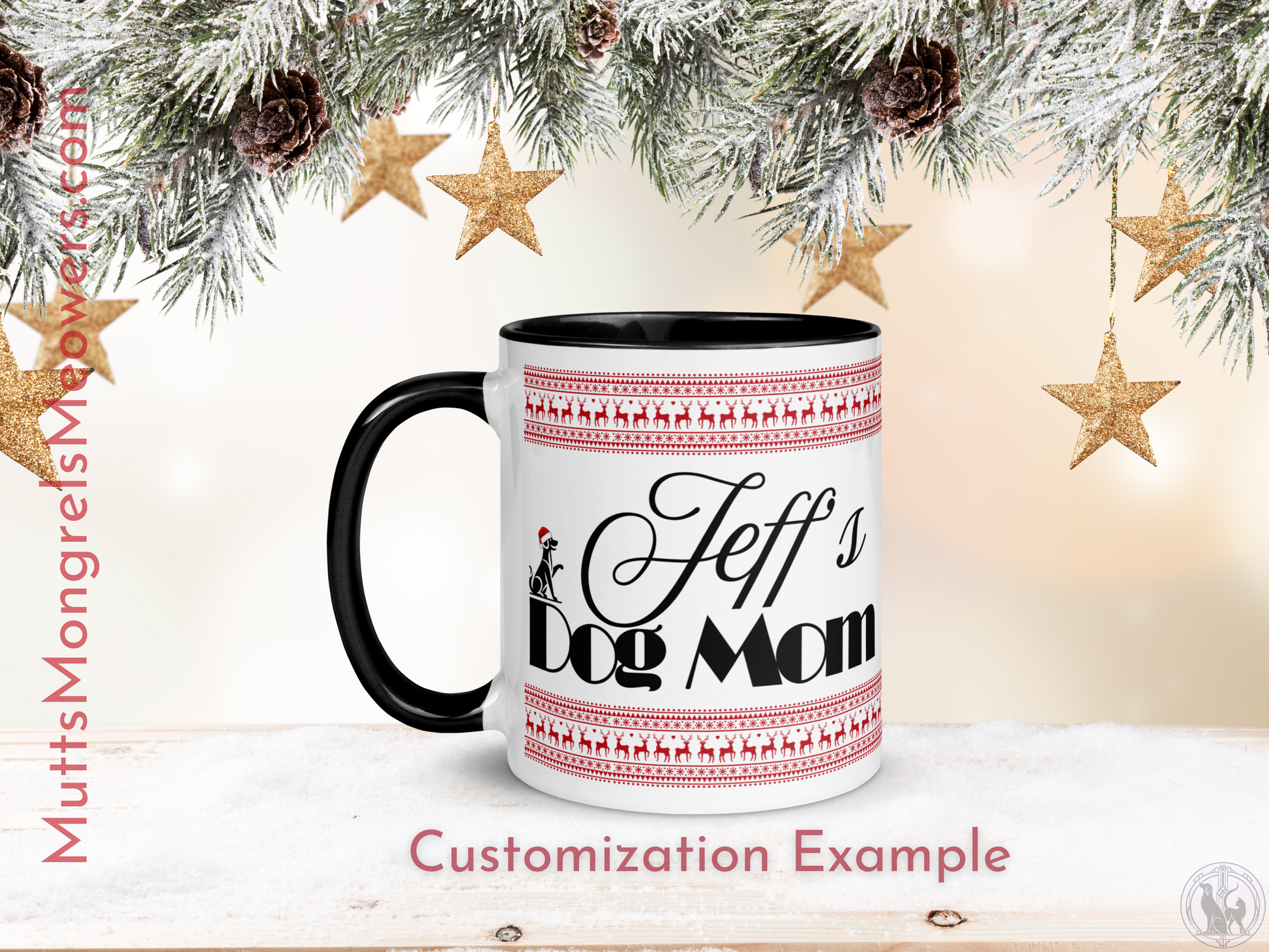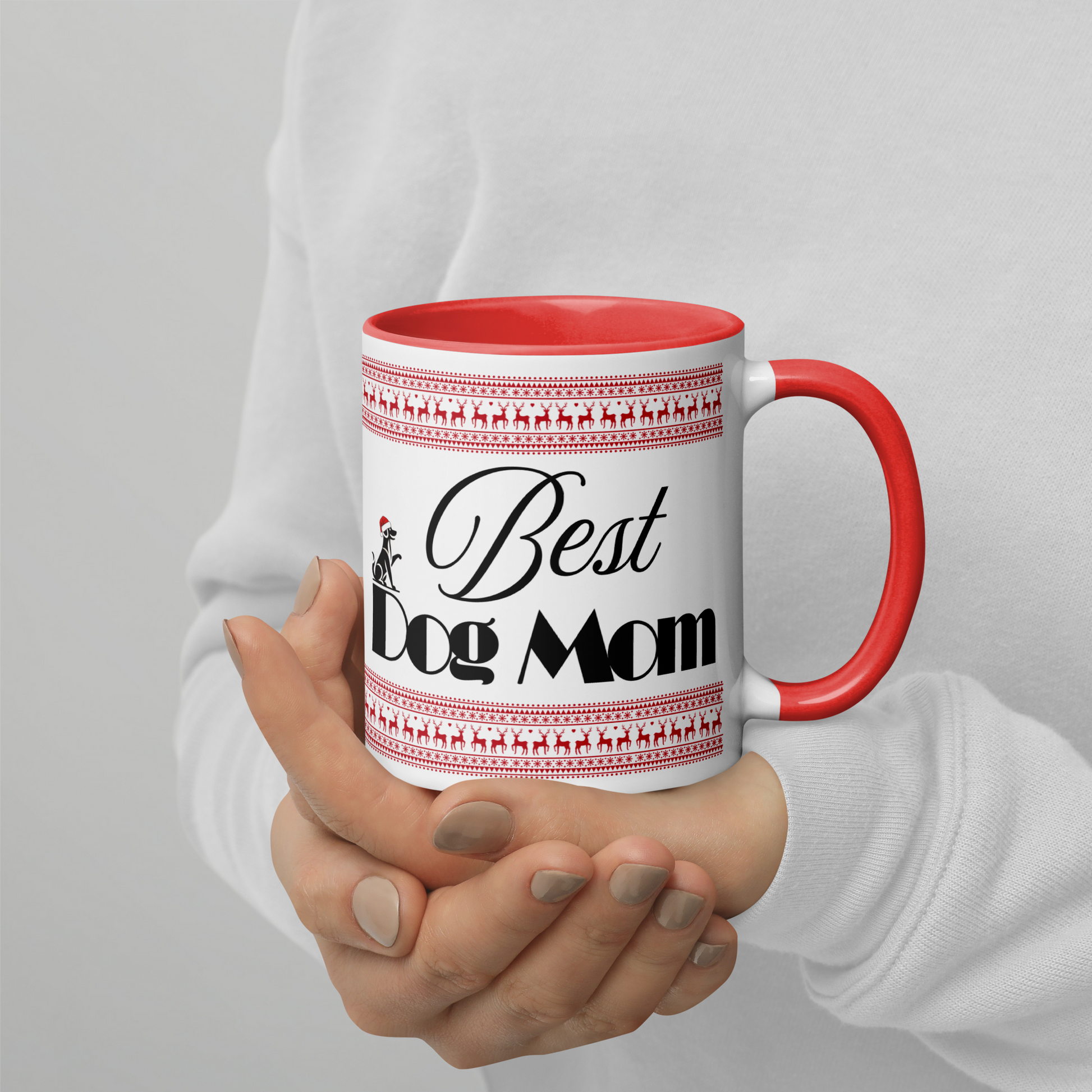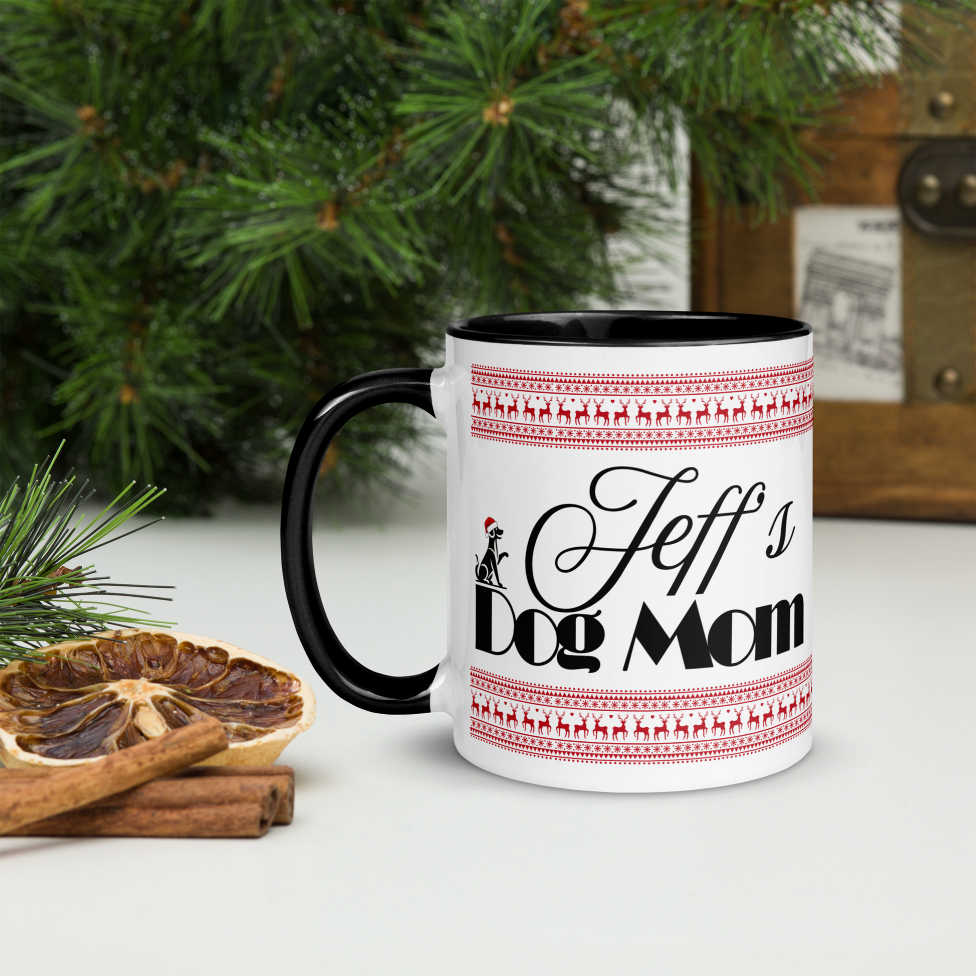 Customizable Dog Mom Mug with Color Inside - Festive Christmas Gift