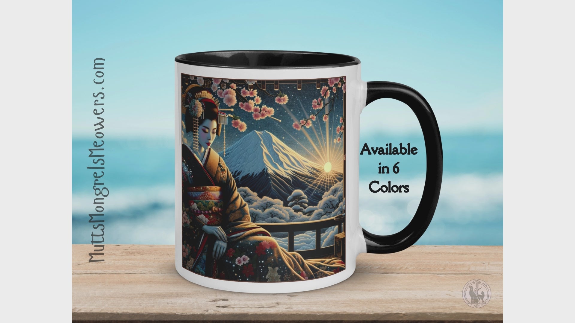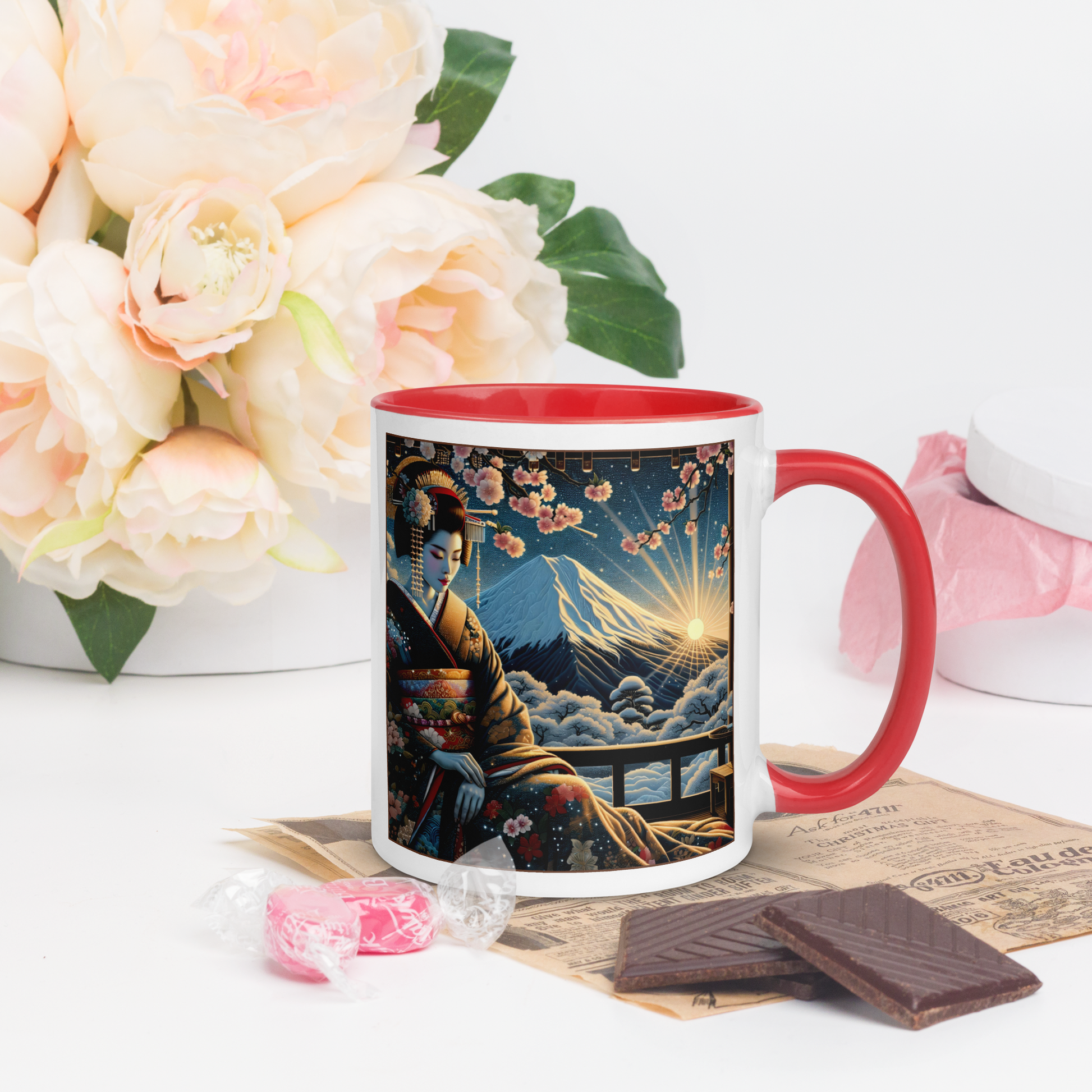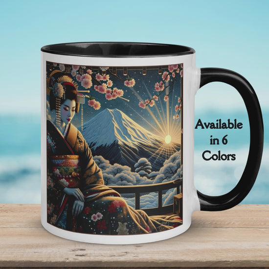 Geisha Mug with Color Inside: Japanes Cherryblossom Lady Gift